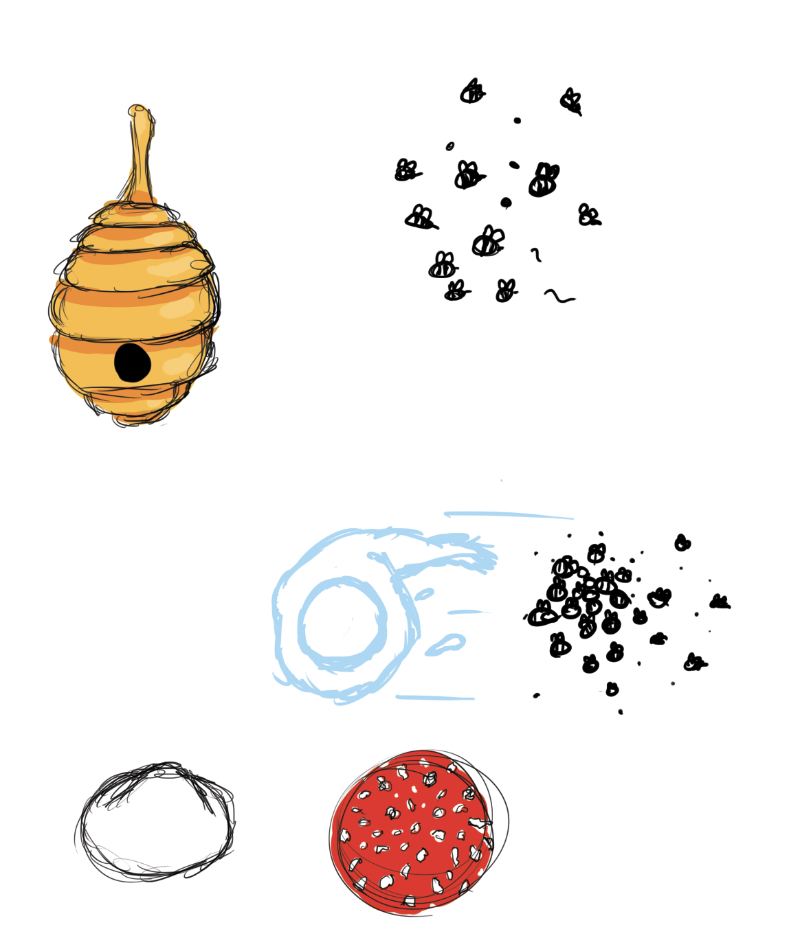 The concept art for Newt and Wisp was a lot of fun to create, and it helped me figure out what my characters would look like and how they’d interact together, in addition to the props and how they’d fit in. Newt was created for a previous class, and Wisp was just a random new character. Both of them complement each other within their bodies' fluidity, and in the color scheme, and the design of them both. The only difference between the concept work and the final character concepts was that Wisp doesn’t have colored lineart.